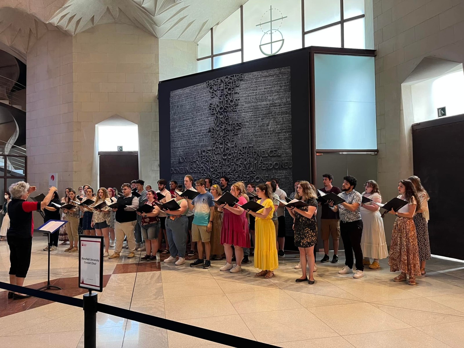 MANSFIELD, PA – Forty-six members of the Mansfield University Concert Choir under the direction of Dr. Peggy Dettwiler, will depart Sunday for Spain and Southern France for their ninth concert tour since 1996. This one has been delayed since 2020 so everyone travels with great anticipation to Spain (Madrid, Segovia, Avila, El Escorial, Barcelona, Montserrat) and France (Carcassonne, Avignon, Arles, Aix-en-Provence.) They will perform in some of the great cathedrals and historical sites such as the Palau de la Musicia, in the Monastery with the famed Montserrat Children’s Choir at the Basilica, the magnificent La Sagrada Familia, and finally in the Eglise Saint-Agricole in Avignon.